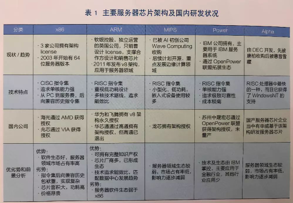 中游IT基礎設備部分,以服務器好存儲為例,國內(nèi)廠商大力投入研發(fā)資源,當前,除核心芯片外,我國服務器零部件國產(chǎn)化率已經(jīng)超過60%。但是當前的主要瓶頸,還是無論在服務器、存儲還是網(wǎng)絡設備領域,X86架構(gòu)芯片都占據(jù)較大的市場份額。我國云計算IT基礎設備廠商在積極研發(fā)自主可控的非X86架構(gòu)芯片,目前應用較多的是基于ARM架構(gòu)的華為鯤鵬芯片泰山服務器、基于天津飛騰芯片的服務器。