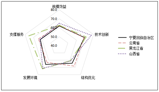 13  2019年排名前四潛力省份雷達圖
