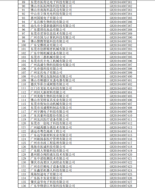 關于廣東省2019年第三批高新技術企業備案的復函