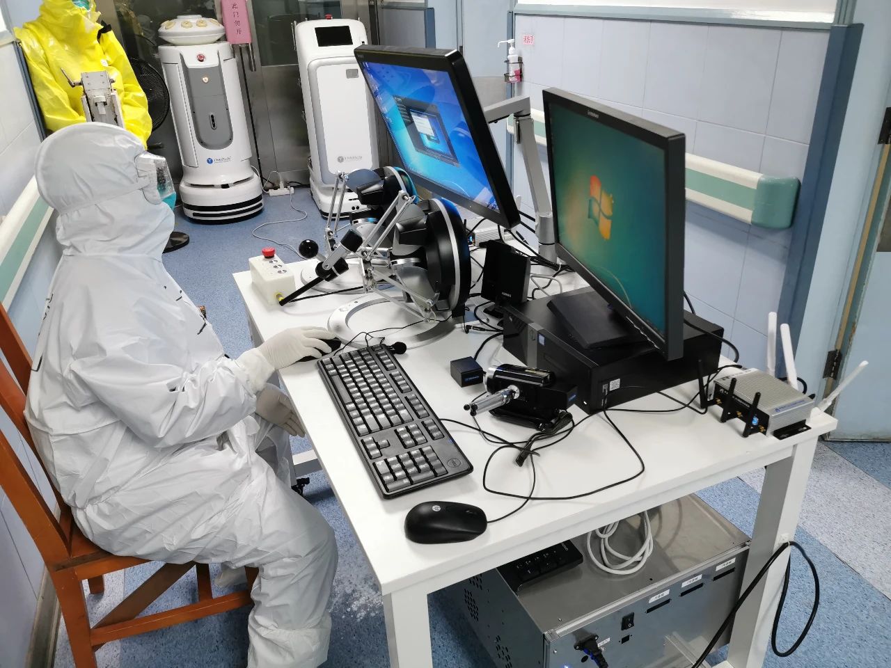 一是保護(hù)醫(yī)務(wù)人員,避免潛在感染風(fēng)險(xiǎn)。在常規(guī)咽拭子操作過(guò)程中,醫(yī)務(wù)人員須與新冠病毒患者近距離接觸,具有較高的感染風(fēng)險(xiǎn),通過(guò)該系統(tǒng)醫(yī)務(wù)人員可以遠(yuǎn)程人機(jī)協(xié)作進(jìn)行采樣,有效避免了交叉感染。