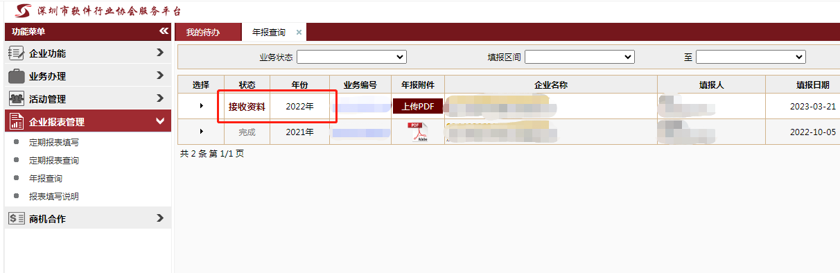 (截取2022年即可,環節需為“接收資料”或“完成”,點擊業務編號可查看報表內容)